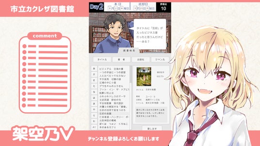 プレイヤーの選択により、来館する利用者や借りていく本のタイトル、会話内容が変化します。