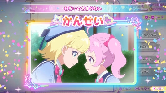 Nintendo Switchの本作は、『ひみつのアイプリ』のアニメの追体験ができるミニシナリオや、印象的なエピソードをミニゲームで遊べるほか、アミューズメントゲーム機で繰り広げられている「ライブゲーム」を、Nintendo Switchで遊べる仕様にアレンジし、ご家庭で何度でもお楽しみいただけるようにしています。