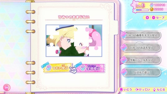 ライブゲームやミニゲームをたくさん遊ぶともらえる「ひみつピース」を集めてパズルを完成させると、アニメの印象的な場面画像が完成。その場面画像が含まれるアニメシーンをボイス付きで鑑賞することができます。さらに、完成した画像は、ジグソーパズルとして、何度でもお楽しみ頂けます。