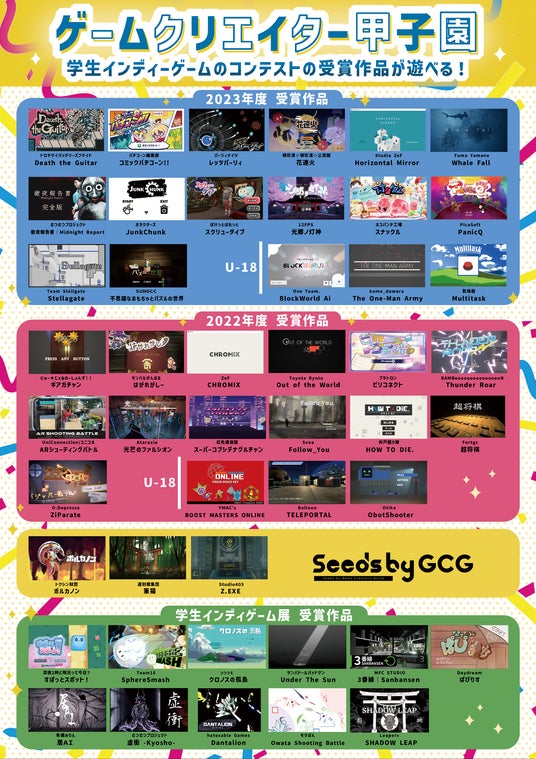「ゲームクリエイター甲子園」は、日本最大級の学生インディーゲームのコンテストであり、若手クリエイターが学び成長するためのコミュニティ&ショウケースです。