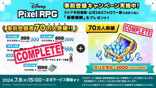 『ディズニー ピクセルRPG』事前登録者数70万人突破で、合計7,500個のクリスタルなどの配布決定!