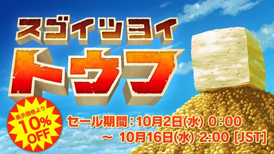 本日10月2日(とうふの日)、究極のとうふアクションゲーム『スゴイツヨイトウフ』Steam版配信開始! ワンコインで買える10%OFFセール実施決定!