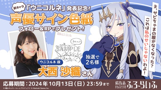 さらに、ウニコルネ役を演じる大西 沙織さん、モナリリ役を演じる花守 ゆみりさんのサイン色紙が当たるプレゼントキャンペーンも開催いたします。