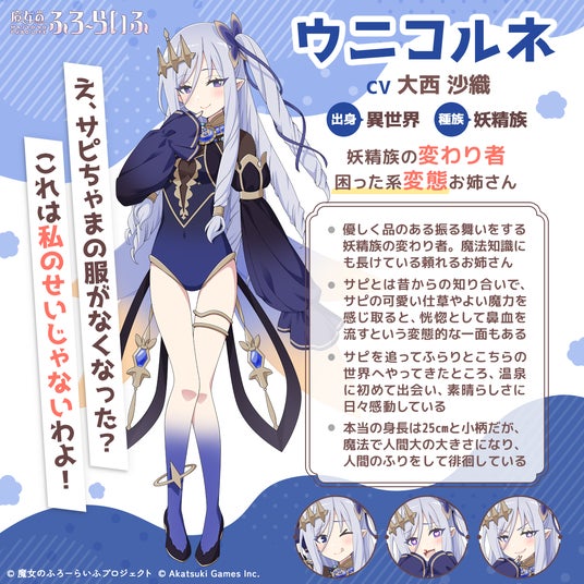 アカツキゲームスのIP創出プロジェクト『魔女のふろーらいふ』、異世界からやってきた妖精&闇の精霊の新キャラクター「ウニコルネ(CV:大西 沙織)」、「モナリリ(CV:花守 ゆみり)」