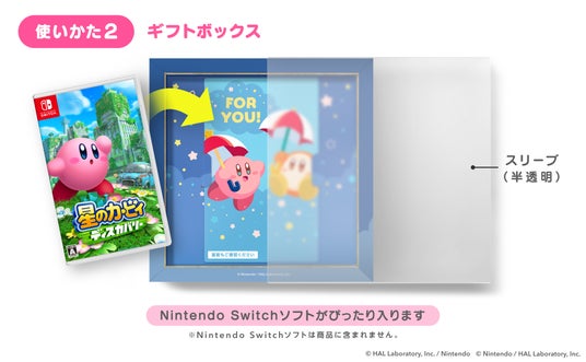 背面にはNintendo Switch(TM)ソフトやハンカチなどプレゼントを入れるスペースがあり、ギフトボックスとしてもおすすめです。※縦170mm×横170mm×厚さ20mm以内のプレゼントが入ります。