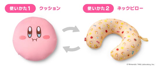 内部のビーズを移動させると、カービィ型のクッションになる2WAYのネックピローです。