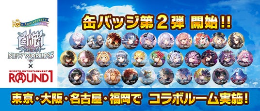 現在開催中の「白猫プロジェクト×ラウンドワンコラボ」では、10月15日(火)10:00より缶バッジ特典が後半に変更になります。後半では「第3章 ~それがすべての終わり~」から「第2章BLOODSKY:DYSTOPIA」までに登場したキャラクターを描いた缶バッジをご用意しております。前半に引き続き、東京、愛知、大阪、福岡の4店舗では『白猫』初めての「3面プロジェクターによる映像演出付コラボルーム」もご用意しております。ぜひお近くのラウンドワンに足を運んでみてください。