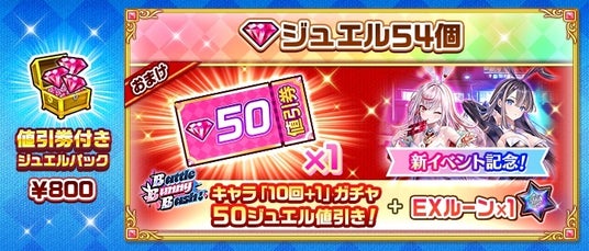 内容物:「ジュエル」400個、「『Battle Bunny Bash!』「10回+1」キャラガチャ ジュエル50個 値引券」1枚、「EXルーン」1個