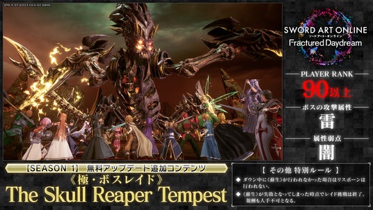 本作の無料アップデートコンテンツとして新たに登場する《極・ボスレイド》。本レイドには超高難易度レイドとなっているため、参加条件として《PLAYER RANK》が90以上が必要となっております。挑戦にあたっては、属性弱点にあたる「雷属性武器」を事前に入手するなどして、攻略に挑みましょう。