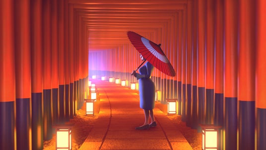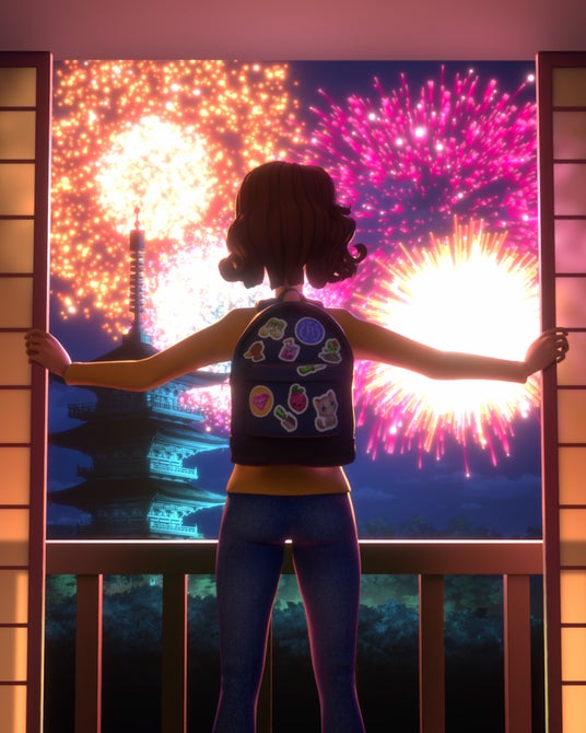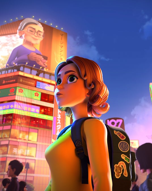 テーマは「マージマンション」と「日本」をマージ(merge)することでした。まず、マディーにとってはじめて見る日本が、伝統とポップカルチャーが交錯した不思議で奇妙でカラフルな世界であることを表現しました。そんなマディーのワクワクするような新しい体験と並行して、同じ日本でおばあちゃんの秘密に満ちた謎の行動を描きました。明るい光の中で行動するマディーと、紫の影の中で行動するウルスラおばあちゃん、そんな二人の対比を日本という不思議な光景を背景に、美しい光と色のコントラストで表現しました。