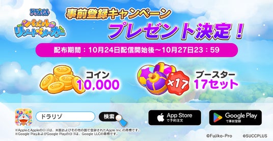 株式会社サクプラス(本社:東京都千代田区)は、『ドラえもん パズルdeリゾートメーカー』(略称:ドラリゾ)の配信を、2024年10月24日(木)に開始いたしましたことをお知らせいたします。