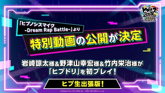 「ヒプノシスマイク -Division Rap Battle-」公式YouTubeチャンネルで放送している「ヒプノシスマイク-Division Rap Battle- HPNM Hangout! +」が、『ヒプドリ』のサービス開始日決定を記念して、出張版として『ヒプドリ』公式YouTubeに登場予定!