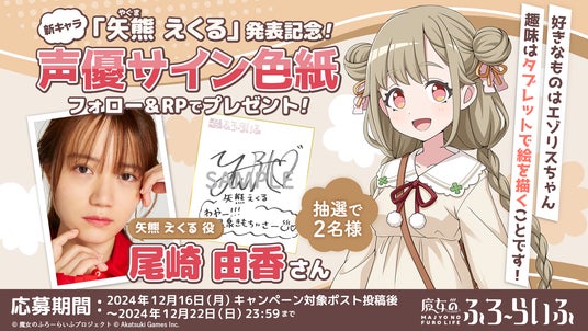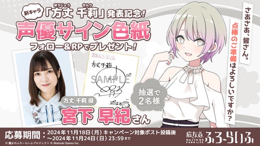 さらに、サウルナ役を演じる上坂 すみれさんのサイン色紙が当たるプレゼントキャンペーンも開催いたします。ムト役を演じる大森 日雅さん、矢熊 えくる役を演じる尾崎 由香さん、方丈 千莉役を演じる宮下 早紀さんのサイン色紙が当たるキャンペーンも順次開催予定です。