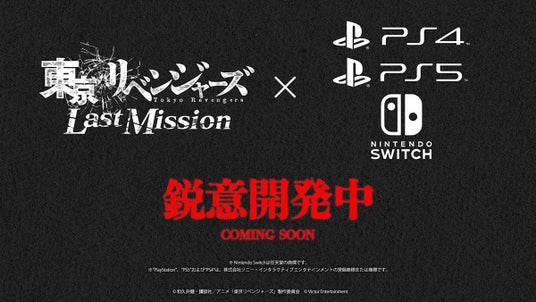 ビクターエンタテインメント株式会社(本社:東京都渋谷区、代表取締役社長:植田 勝教)は、TVアニメ『東京リベンジャーズ』初の3DアクションRPGである『東京リベンジャーズ Last Mission』(略称:ラスリベ)のNintendo Switch版、PS5、PS4版を鋭意開発中であることをお知らせいたします。