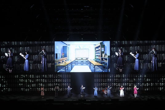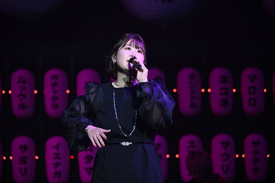 スタートを飾るライブパートの1曲目は、小木曽雪菜役・米澤円さんによる「届かない恋」(『WHITE ALBUM2 -introductory chapter-』OP)。米澤さんは物語において重要な鍵を握る同曲を、生バンド演奏とともに切なく歌い上げ、観客を作品の雰囲気へと一気に引き込んでいきました。2曲目は、冬馬かずさ役・生天目仁美さんが米澤さんと交代する形で登場し、『WHITE ALBUM2 -closing chapter-』のOPテーマ「幸せな記憶」を披露。雪菜、かずさという2大ヒロインの想いをそれぞれ存分に感じられました。