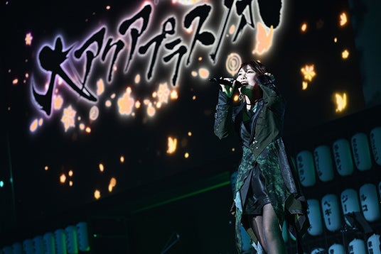 そしてSuaraさんによるTVアニメ『ティアーズ・トゥ・ティアラ』のOP「Free and Dream」が始まると、会場の熱はさらにヒートアップ。Suaraさんはさらに『うたわれるもの ロストフラグ』の主題歌「天命の傀儡(マリオネット)」を披露しました。そしてライブパートの最後を飾ったのは、SuaraさんによるTVアニメ『うたわれるもの 偽りの仮面』前期OPテーマ「不安定な神様」。歌詞中にある「また会えるその日まで」が実にラストに相応しく、観客もすべての力を出し切るように大きな歓声を上げている光景は圧巻でした。