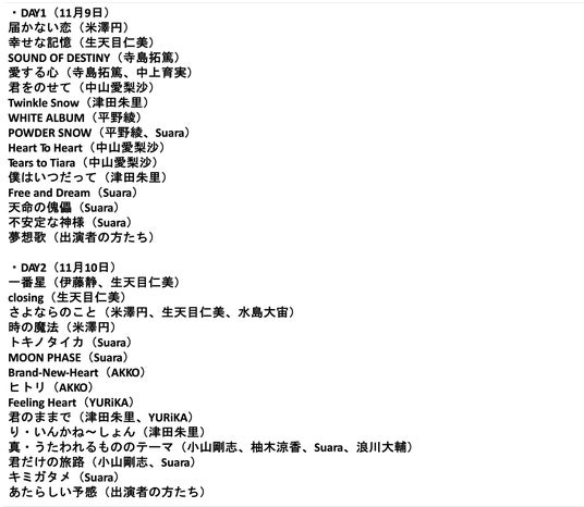 ライブパート歌唱曲※()内は歌唱者、敬称略