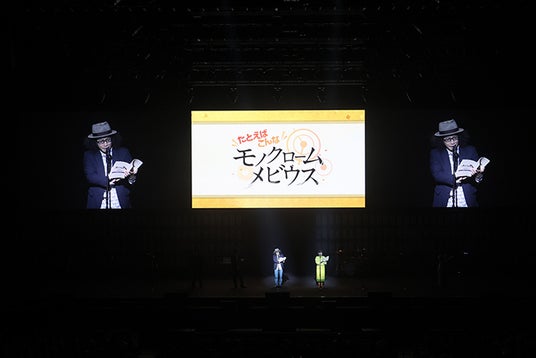 DAY1でも大きな笑いを起こした朗読劇。DAY2は「たとえばこんなモノクロームメビウス」と題し、『モノクロームメビウス 刻ノ代贖』よりオシュトル(利根健太朗さん)とシューニャ(皆口裕子さん)を中心に物語が展開。ベナウィ(浪川大輔さん)がネコネ、クロウ(小山剛志さん)がキウルのポジションになる、ハクオロ(小山力也さん)がパシュパクル、エルルゥ(柚木涼香さん)がトリコリのポジションになるなど、ハチャメチャな展開で会場は大いに盛り上がりました。