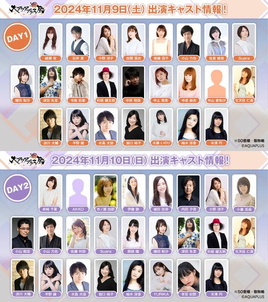 株式会社アクアプラス(以下アクアプラス)は、設立30周年イベント「大アクアプラス祭 -30th Anniversary-」(以下「大アクアプラス祭」)を2024年11月9日(土)・11月10日(日)に開催いたしました。本リリースでは2日間にわたり実施した大アクアプラス祭の模様をレポートします。