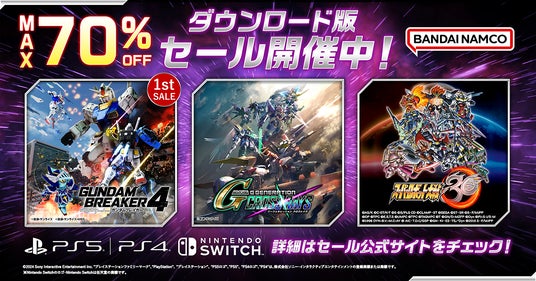 株式会社バンダイナムコエンターテインメントは、ニンテンドーeショップおよびPlayStation(R)Storeにて、『ガンダムブレイカー4』をお得な価格で購入できるダウンロード版セールを開催中であることをお知らせいたします。