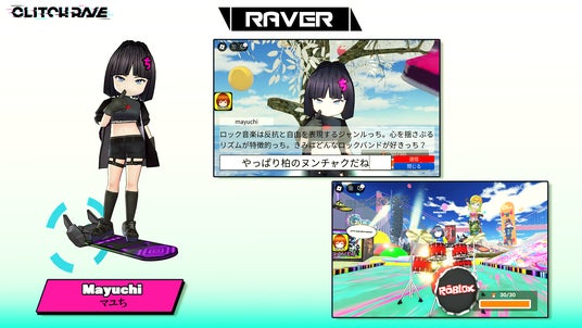 これまでTaigen Kawabe(Bo Ningen)、食品まつりa.k.a foodman、 cyber milk ちゃんをモデルとしたRAVERがゲームに登場しました。今回リリースしたFIND THE RAVEでは新たに、バンド「最強マンボウ修羅ぼうや」のドラムを担当するマユちさんをモデルにした新キャラクターが加わりました。