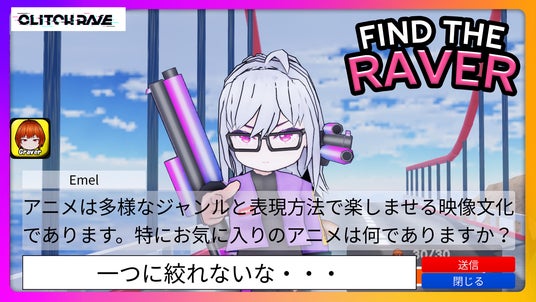 今回新たにリリースしたFind The RAVERではマップを探索し、30種類(10人×3段階のレアリティー)のRAVER(レイヴァー)を探して、AIを活用した自由な会話を楽しめます。