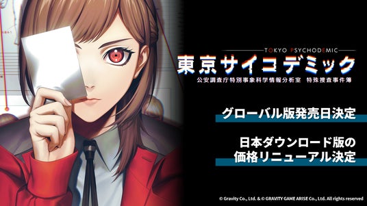 グラビティゲームアライズ株式会社(所在地:東京都中央区)は、リアル科学捜査推理シミュレーションゲーム『東京サイコデミック~公安調査庁特別事象科学情報分析室 特殊捜査事件簿~(以下、『東京サイコデミック』)』について、グローバル版の発売を2024年11月28日(木)に決定いたしました。その発売に伴い、日本ダウンロード版も新価格にリニューアルいたします。