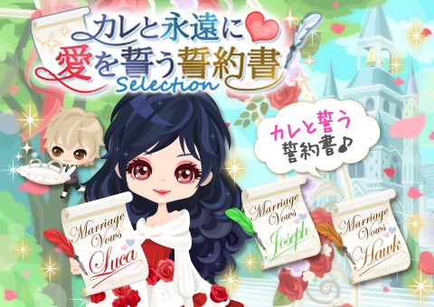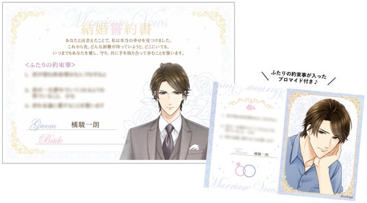 また、特別企画として、総勢151人のキャラクターとの「結婚誓約書」 をご用意。結婚誓約書には、それぞれのカレが語る個別の“誓いの言葉”が記載されており、カレとの挙式気分がリアルでもお楽しみいただけます。