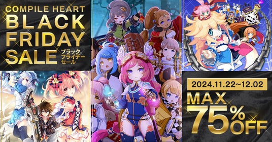 アイディアファクトリー株式会社(代表取締役社長:佐藤 嘉晃/所在地:東京都豊島区)の子会社である株式会社コンパイルハート(取締役社長:冨長 直人/所在地:東京都豊島区)は、本日11月22日(金)よりニンテンドーeショップおよびPlayStation(R)Storeにて《コンパイルハートブラックフライデーセール》を開始いたしました。