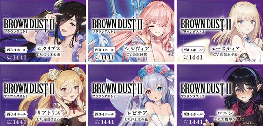 『ブラウンダスト2』ブースでは、魅力的なキャラクターカットに加え、主要キャラの誕生日も分かる2025年特製カレンダーの無料配布(数量限定)や、ガチャ筐体によるリアルガチャ企画などを実施します。加えて、豪華プレゼント企画やコスプレイヤー等を進行中です。(詳細は後日、公式X等で告知)