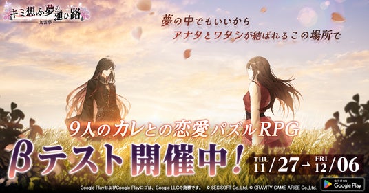 グラビティゲームアライズ株式会社(所在地:東京都中央区)は、11月27日(水)より、韓国でリリース10周年を迎えた「九雲夢」シリーズの最新作スマートフォン向けゲーム『キミ想ふ夢の通ひ路~九雲夢~』のβテストをGoogle Playストアにておこなうことをお知らせします。
