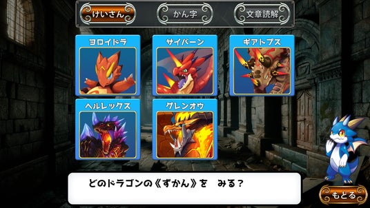 Gakkenより発売の累計発行部数90万部を突破する人気ドリル「ドラゴンドリル」をゲーム化。