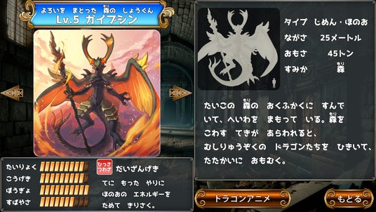 また、ドラゴンのステータスや設定など、詳細を見ることも可能。めざせ!フルコンプリート!