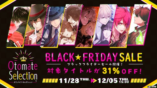アイディアファクトリー株式会社が手掛ける女性向けゲームブランド「オトメイト」が贈るスマートフォンアプリシリーズ『オトメイトセレクション』では、2024年11月28日(木)15:00~12月5日(木)15:00の期間限定で、対象タイトルが31%OFFとなる「ブラックフライデーセール」を開催いたします。セール期間中は「ピオフィオーレの晩鐘」や「終遠のヴィルシュ -ErroR:salvation-」を始めとした人気作:全22タイトルがセール対象となります。