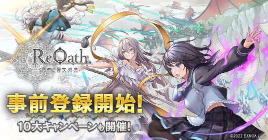 合同会社EXNOA(本社:東京都港区、CEO:村中 悠介、URL:https://games.dmm.com/)は、10周年記念タイトルとなる『ReOath-巨神と誓女 外典-』(以下、ReOath)の事前登録と、豪華賞品が当たる10大キャンペーンを本日12月19日(木)より開始したことをお知らせいたします。