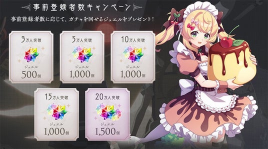 さらに、事前登録者数に応じて最大9000ジュエルやゲーム内アイテムがもらえる事前登録キャンペーンを始めとした豪華報酬がもらえるキャンペーンを順次開催予定です。奮ってご参加ください!