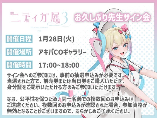 公式絵師のお久しぶり(@imlllsn/X)のサイン会を1月28日(火)に実施いたします。