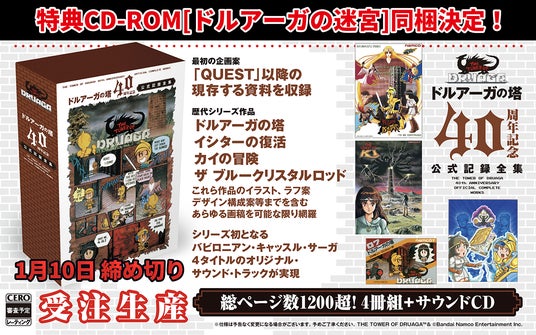 株式会社バンダイナムコエンターテインメントは、自社エンタメコマースサイト「ASOBI STORE」にて、10月25日より受注販売中の「ドルアーガの塔」40周年記念記録全集に特典CD-ROMを同梱することを決定しました。