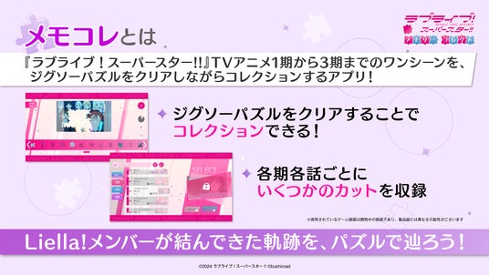 メモコレは、TVアニメ「ラブライブ!スーパースター!!」1期から3期の名シーンを、遊びながらコレクションしていくパズルアプリ。