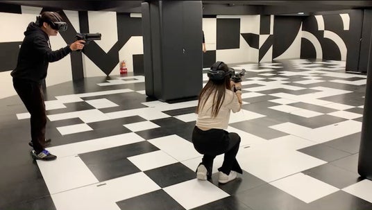 世界で展開されているシューティング型VR-esportsアーケード。実銃を元にガンコントローラーを