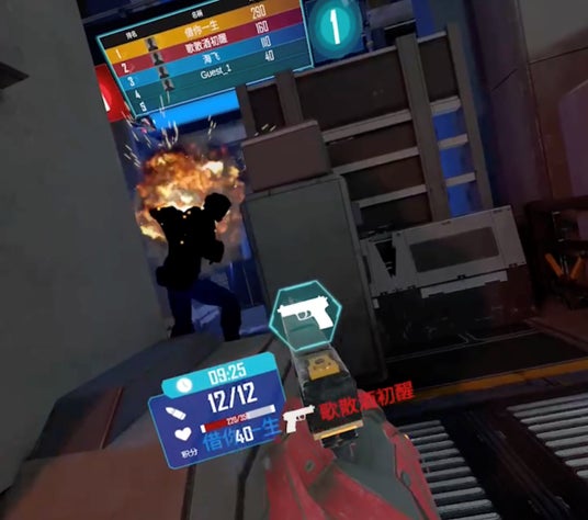 16名の大人数でサバイバルゲームのような対人戦を楽しめるフリーローム型VRシューティングです。