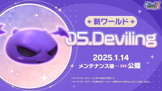 なお、2025年1月14日(火)より、新ワールド「Deviling」がオープンいたしました。PC版の登場に合わせて、新たに始める方も、すでにプレイされていて新しいキャラクターを作成したい方も、ぜひ新ワールドでの冒険をお楽しみください。