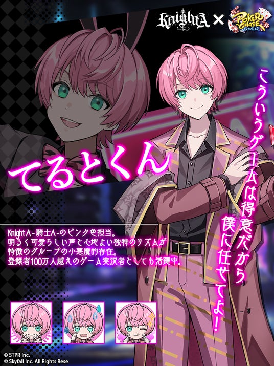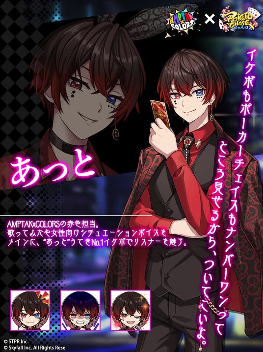 株式会社Skyfall(東京都港区 代表取締役社長:長谷川 智一、以下Skyfall)が運営するバトロワ式オンラインポーカーゲーム『ポーカーチェイス』は、2.5次元歌い手アイドルグループ「すとぷり」「Knight A - 騎士A -」「AMPTAKxCOLORS」「めておら - Meteorites -」から選出された6名の「STPR Creators」と、2025年2月5日(水) ~ 2月26日(水)の期間限定でコラボイベントを初めて開催することが決定しました。