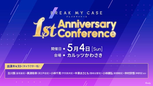 株式会社coly(所在地:東京都港区、代表取締役社長:中島杏奈)は、本日2025年2月6日(木)に、『ブレイクマイケース』(以下、ブレマイ)のアプリリリース1周年を記念した豪華声優陣が出演するキャストイベント『ブレイクマイケース -1st Anniversary Conference-』の開催を決定しました。