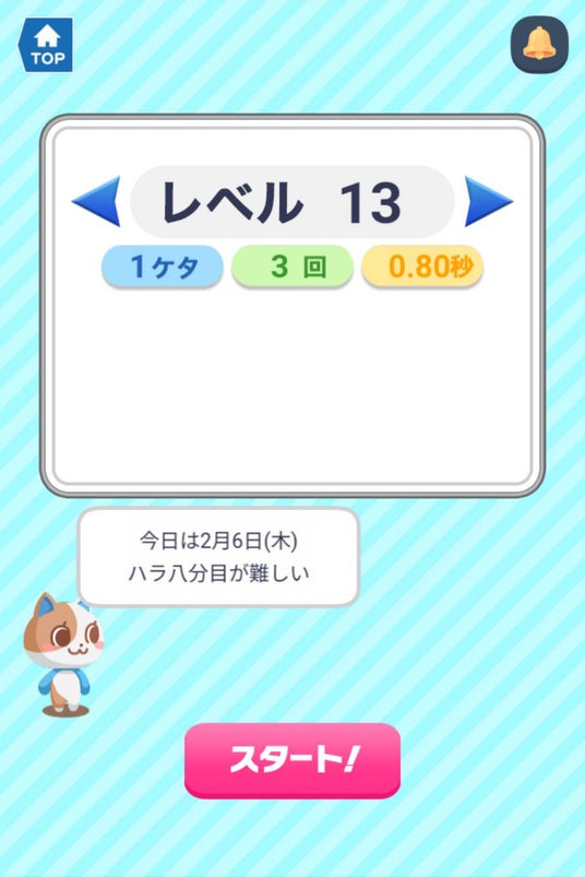 正解を続けることでレベルが上がり、難易度も徐々にアップ。