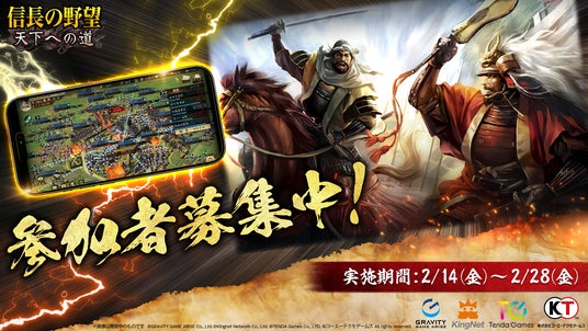 グラビティゲームアライズ株式会社(所在地:東京都中央区)は、スマートフォン向け新作ゲームアプリ『信長の野望 天下への道』のβテストを、2025年2月14日(金)よりApp Store(TestFlight) / Google Play ストアの両プラットフォームにて開始したことをお知らせいたします。