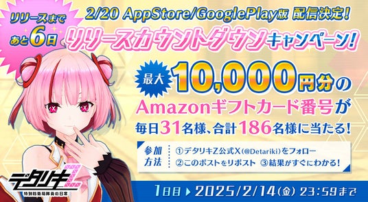 2月14日(金)より、抽選でAmazonギフトカード番号がもらえるキャンペーンを公式X(@Detariki)にて実施中です!