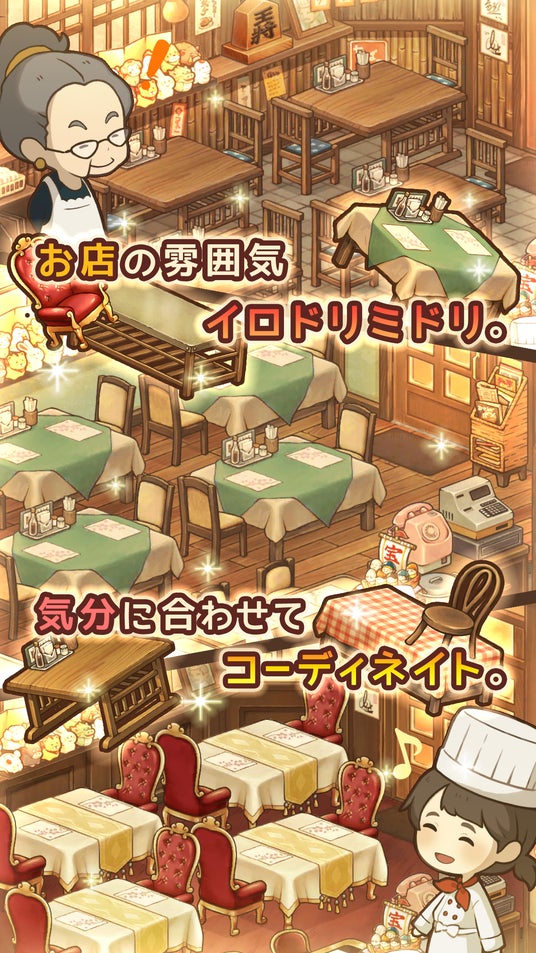本作は、小さなレストランを舞台にした、物語形式のお店育成ゲームです。お店をせっせと切り盛りする、おばあちゃんと孫娘を助けて、お店を立派に成長させましょう!