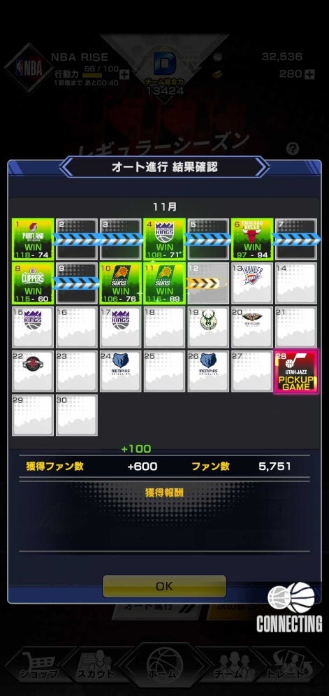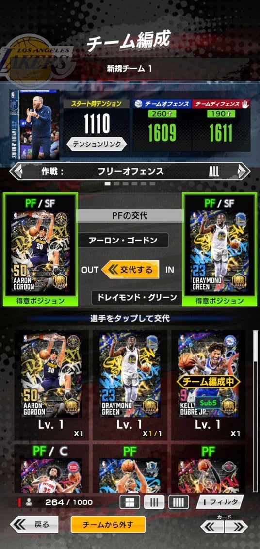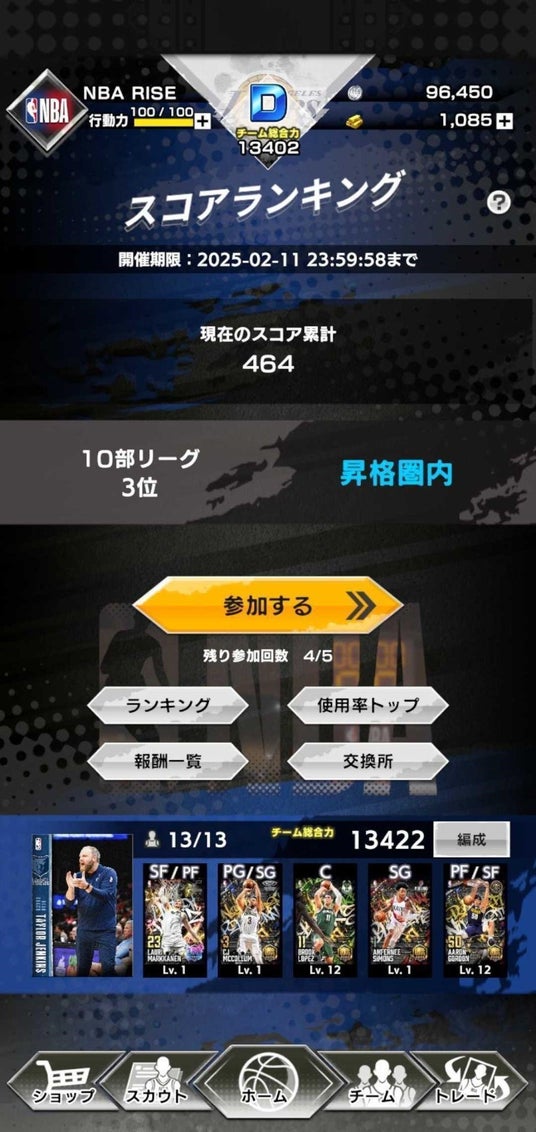 手に入れたNBA選手たちを、自分好みに組み合わせてチームを編成!選手はスカウトやイベントなどで獲得することができます。毎日プレイしてスター選手を獲得しましょう。