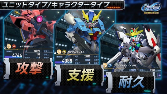 自分の好きなモビルスーツやキャラクターを集め、成長・開発・編成といった